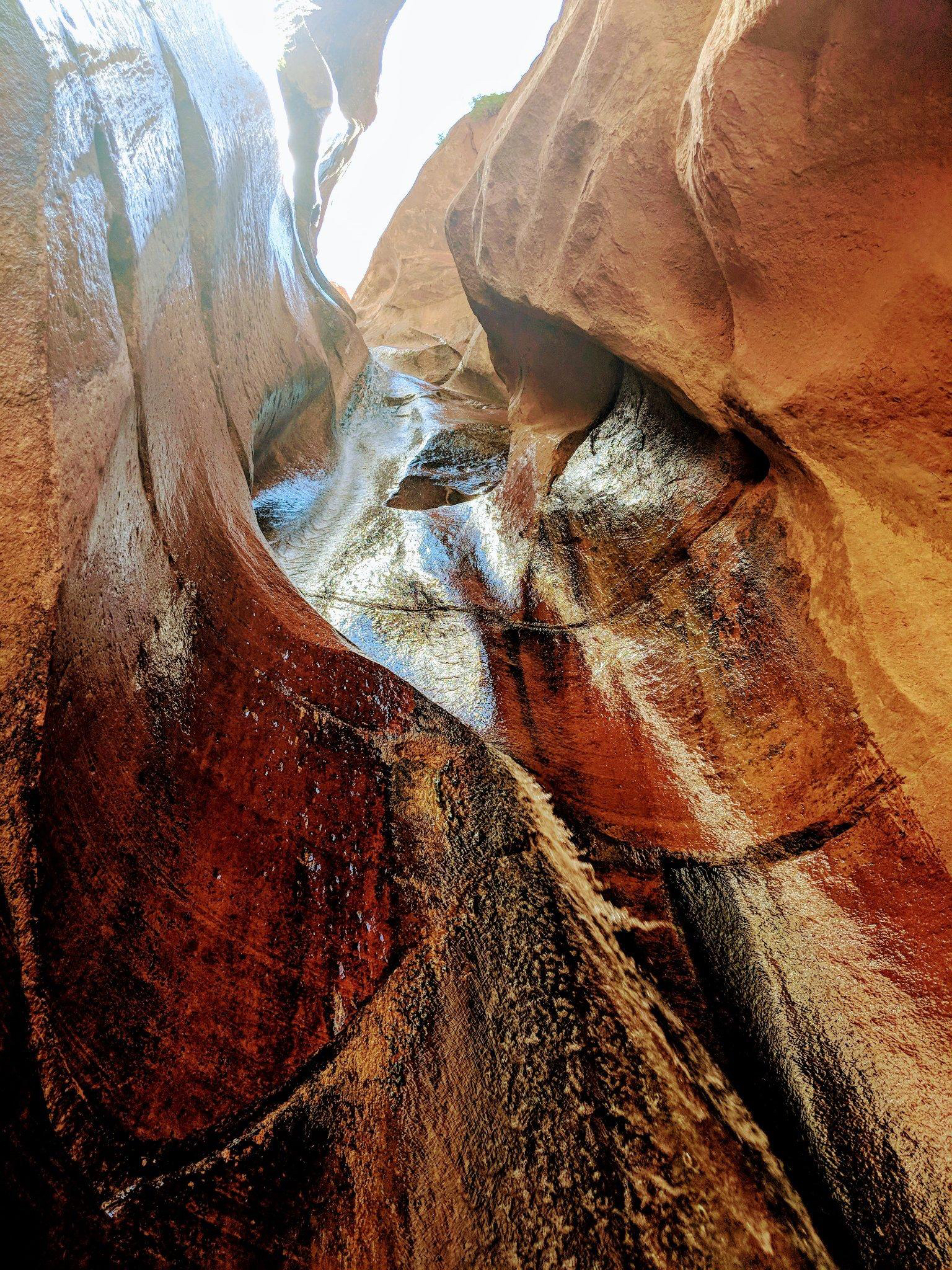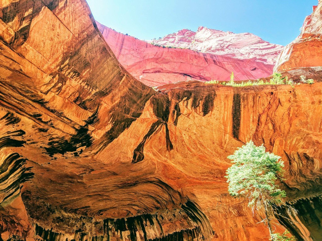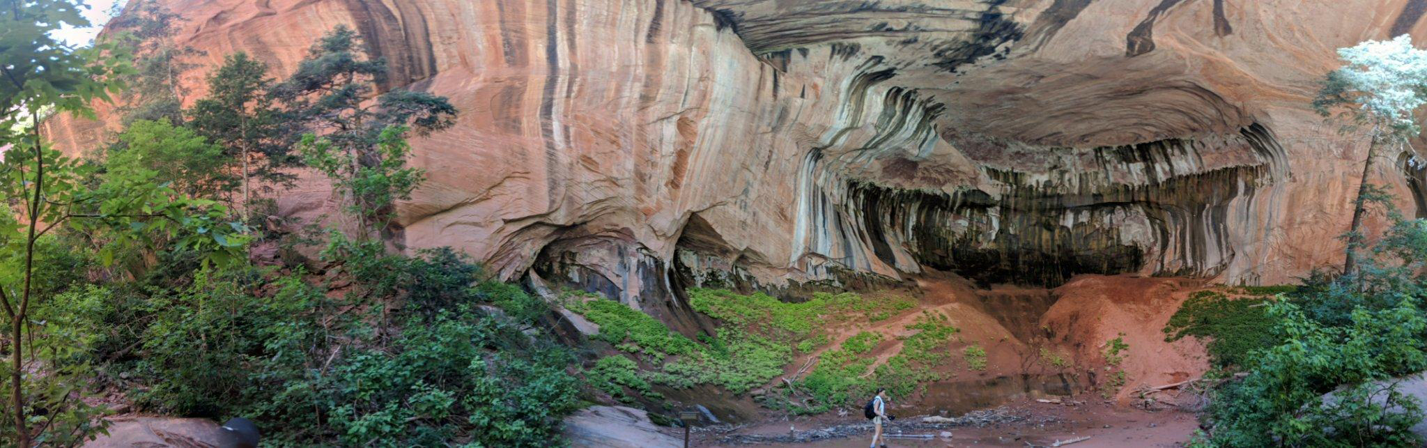 In the morning, we headed north off the 15 to the Kolob Canyons in search of a less hectic experience. The middle fork of the Taylor Creek Trail to the Double Arch Alcove will take you 3-4 hours and runs 4.9 miles round trip. The entirety of the trek traverses a quick moving stream which offers welcome relief to the heat. This moderate rated hike has plenty of shady spots to rest and a few old cabins to check out along the way. The alcove at the end of the trail is well worth the effort, and if you follow the trickle of the creek further up the valley, you may find the hidden waterfall for a natural cold shower before heading back out.