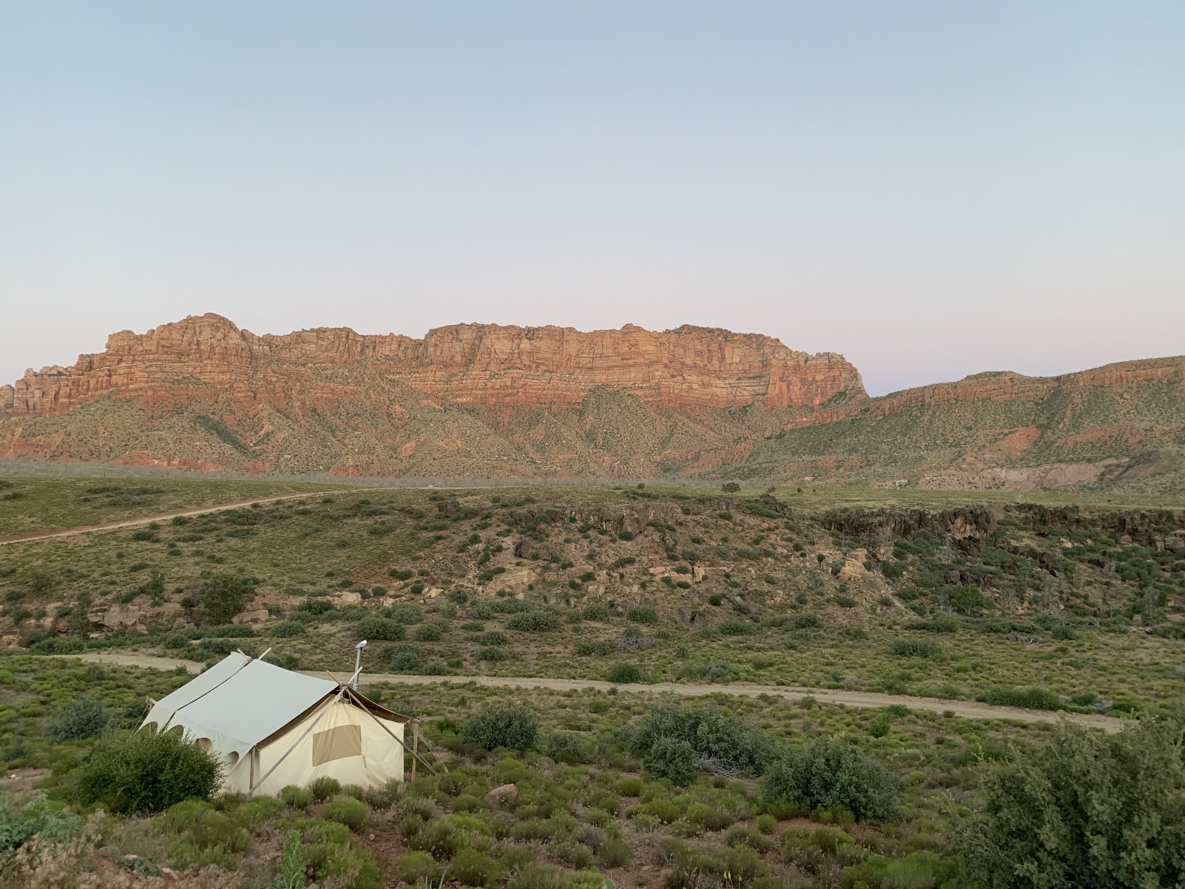 Zion, one of the five “Mighty Parks,” is both breathtaking and bountiful. The lush green shrubs juxtapose with the pink and orange lined cliffs as you make your way through the Virgin River Canyon that leads to the south entrance of the park and the Zion Canyon Visitor Center. But, if you take a left on Kolob Terrace Road and follow the dirt trail for a few miles, you’ll discover a glamper’s paradise; Under Canvas, Zion.